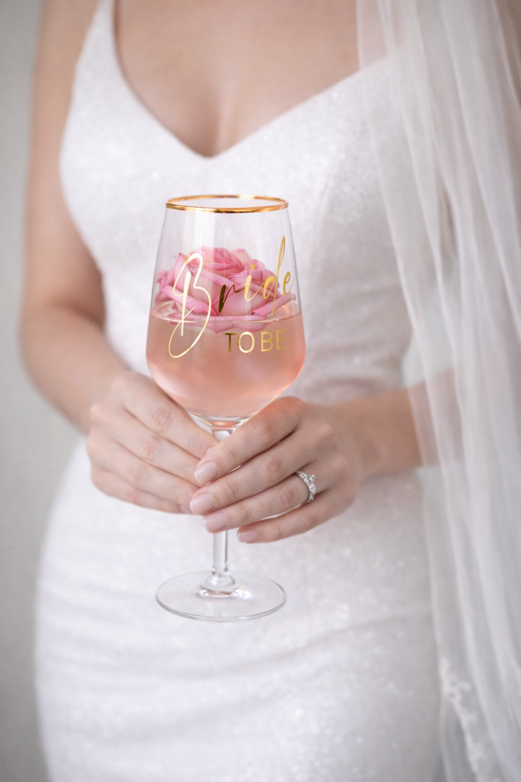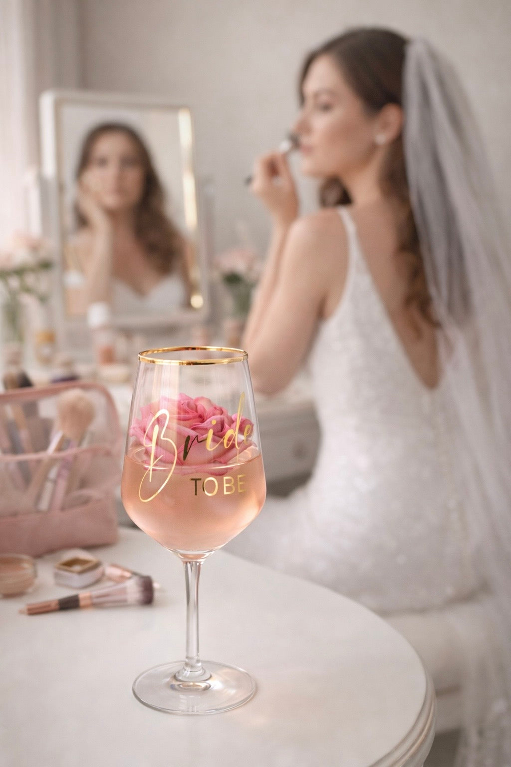 Die hochwertigen Premium Weingläser mit stilvollem Goldrand sind die ideale Geschenkidee für Familie und Freunde und garantiert das Highlight auf jeder Bridalshower.
